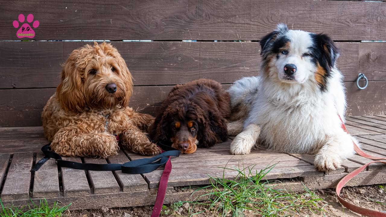 Fin de stage commune avec Simba (Labradoodle mâle 8 mois), Aston (Cocker mâle 7 mois) et Volt (Berger Australien mâle 13 mois). Un peu de tension au début, mais vite See more